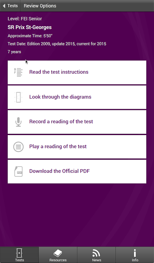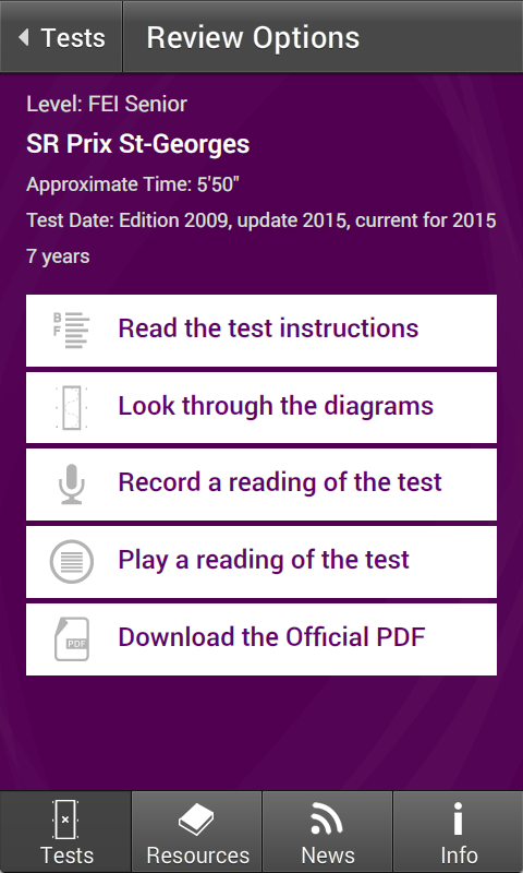 Suitable for FEI Dressage riders. A useful reference for trainers, judges and spectators. Study FEI dressage tests with a more visual and auditory learning approach. Each test allows you to: