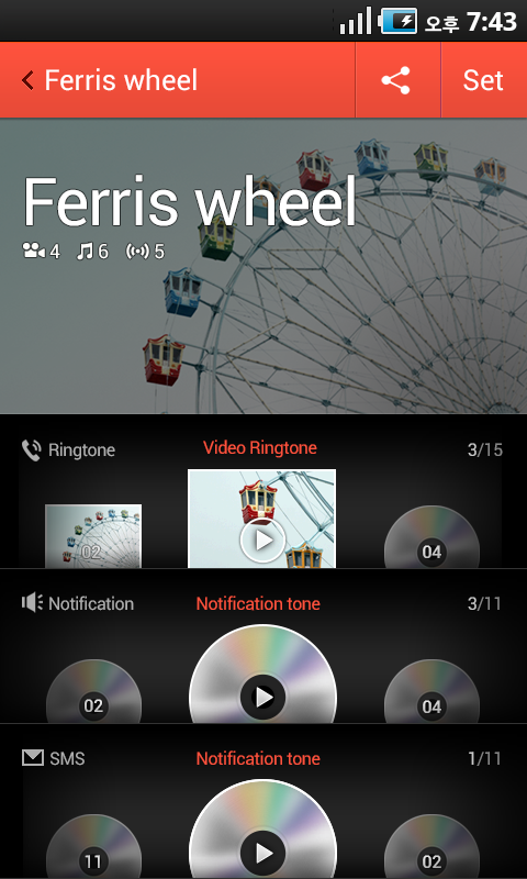 ▶Launch dodop pop and select “Package” menu, or touch the icon of downloaded package app and set video ringtone & SMS/ notification sound!