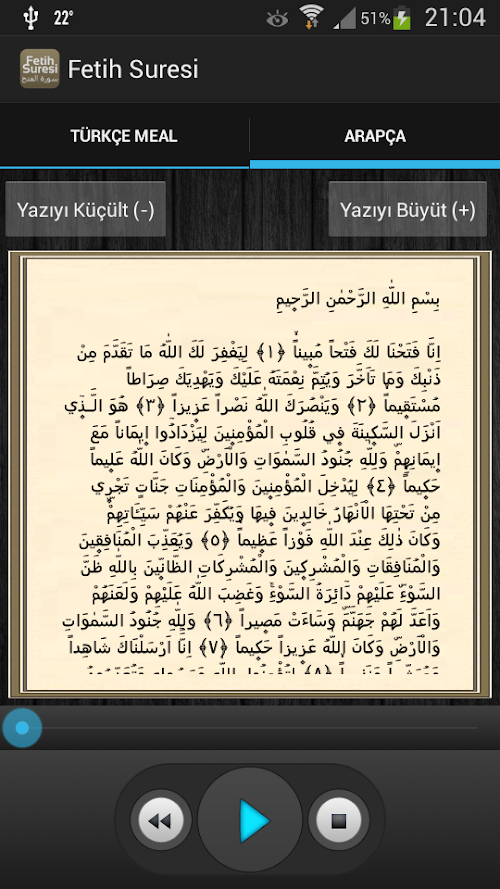This version of Fetih Suresi Android App comes with one universal variant which will work on all the Android devices.