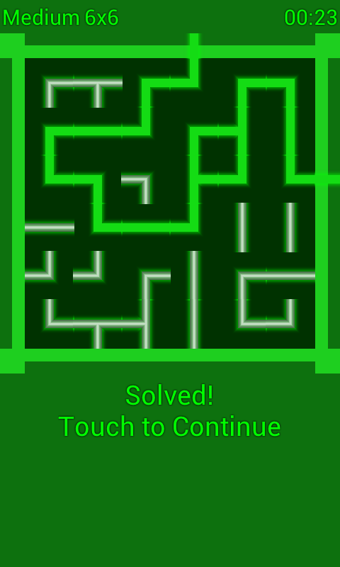There are 3 different difficulty levels easy, medium, and hard. Every board is randomly generated. If you cannot figure out the solution you can press menu-> solve and the game will solve the board for you. In fact, every board on this screen can be solved by this way.