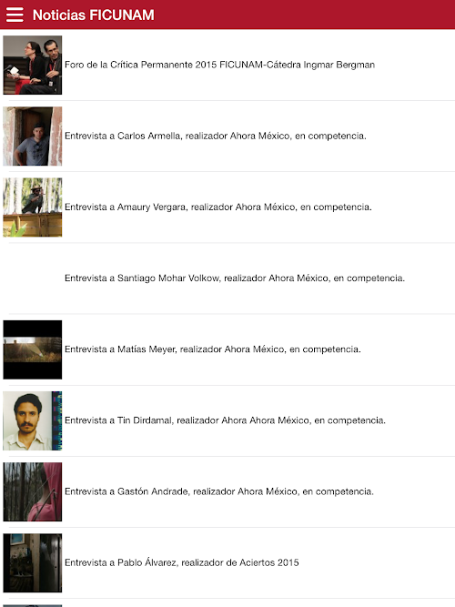 En la aplicación oficial de FICUNAM encontrarás la información de la programación completa del Festival: sinopsis, horarios y sedes; para que puedas agendar las películas que te interesa ver.The International Film Festival UNAM (FICUNAM) aims to showcase the work of both Mexican and foreign emerging directors. In his young life he has become the most important international and national contemporary showcase cinema showcase to the Mexican public. The fourth edition of FICUNAM will take place from February 27 to March 9, 2014