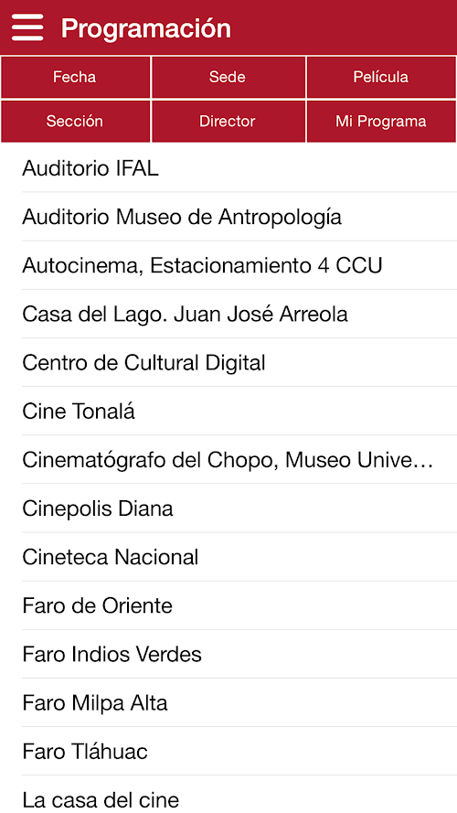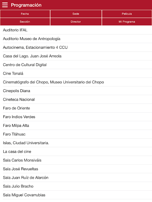 The official application FICUNAM find full details of the Festival programming: overview, places and times, so that you can schedule the movies that you want to see.