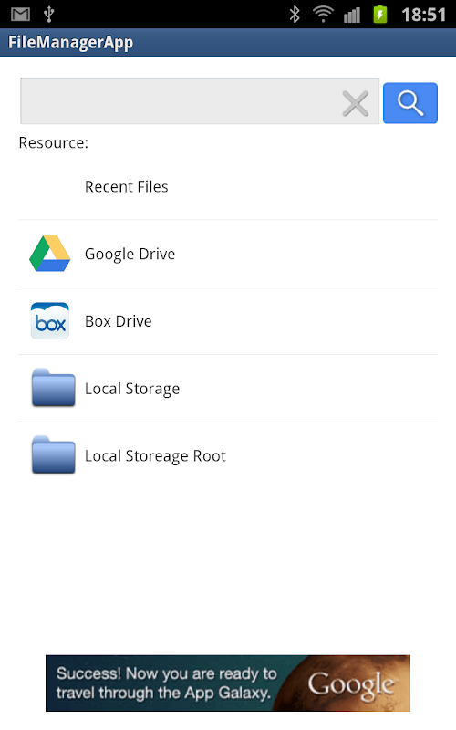 You can use this file browser to look for files in multiple cloud drives. The current implementation has Google Docs, Box.com, as well as the local device (phone).