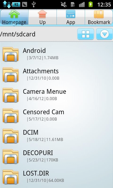 Bookmark: you can view memory condition of your device, my picture, and you can also add your frequently used files to bookmark.