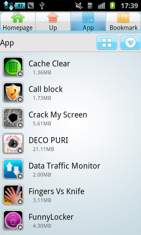 Press-hold apps to unload, shortcut to desktop, view attribute; and view Statistics, search apps in menu;