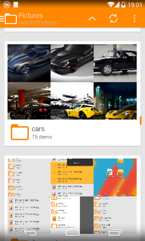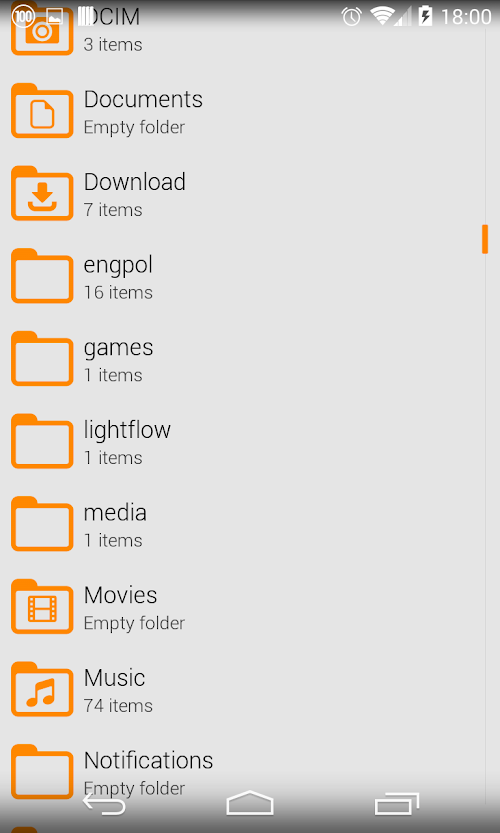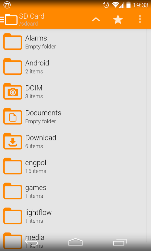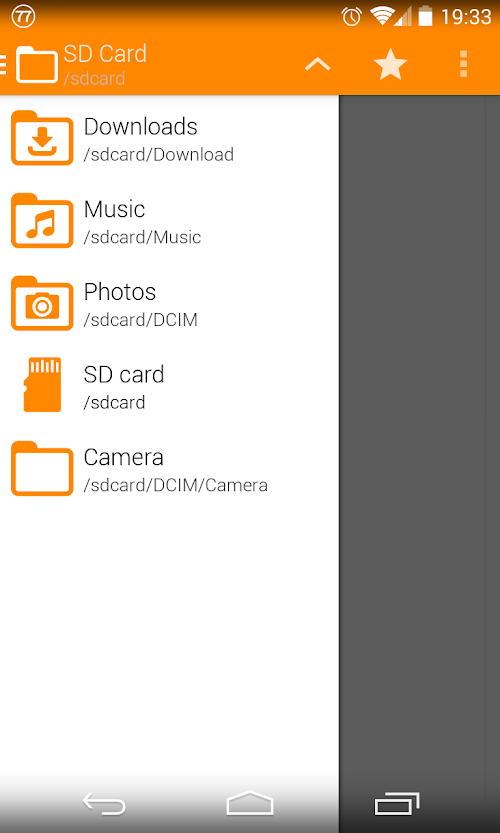 All New File Manager designed for ease of use and beautiful interface. It boasts the ability to bookmark folders, add file and folder shortcuts to homescreen, and takes advantage of Android KitKat's transparent bars.