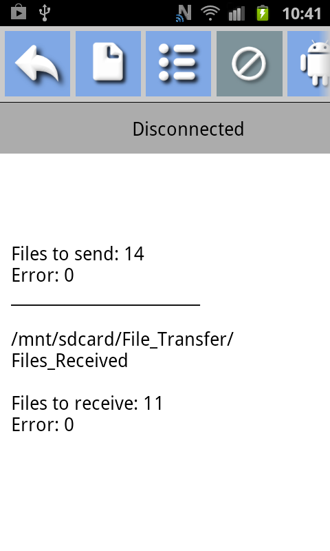 - Run "File Transfer" on your Android device, enter the public IP of the server (or the private IP of the server, if you are on the same network) and the same port, you wrote in the server. Press the Connect button.