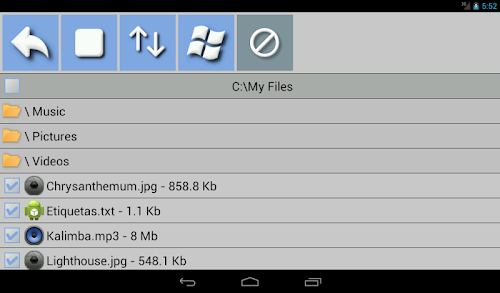 You can see on your Android device, both the Android files such as Windows files, select them and send and receive them. No need to be in front of the PC.
