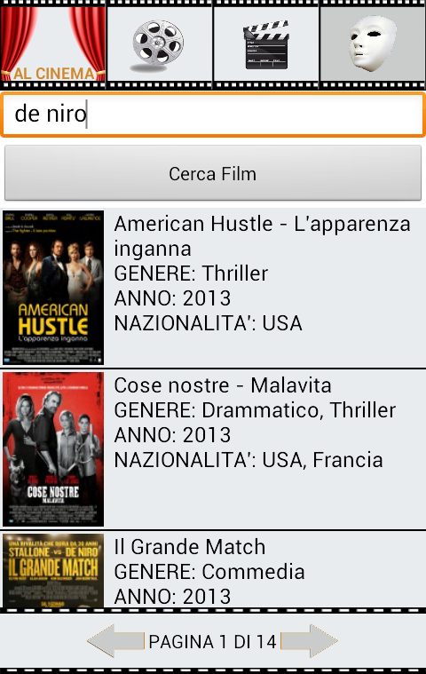Search for Actor: Do you want to know all the movies of your favorite actor? Enter your name in the search bar and the application will print 'screen all the films interpreted by it, giving you the chance' to consult the playbill, the plot, the Cast and many other useful information