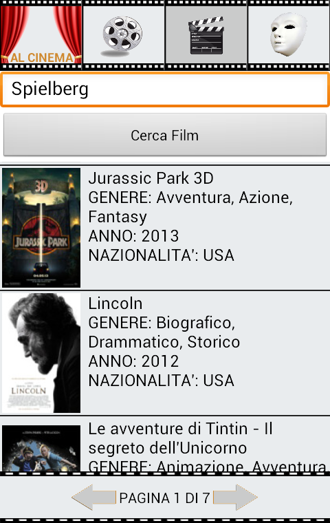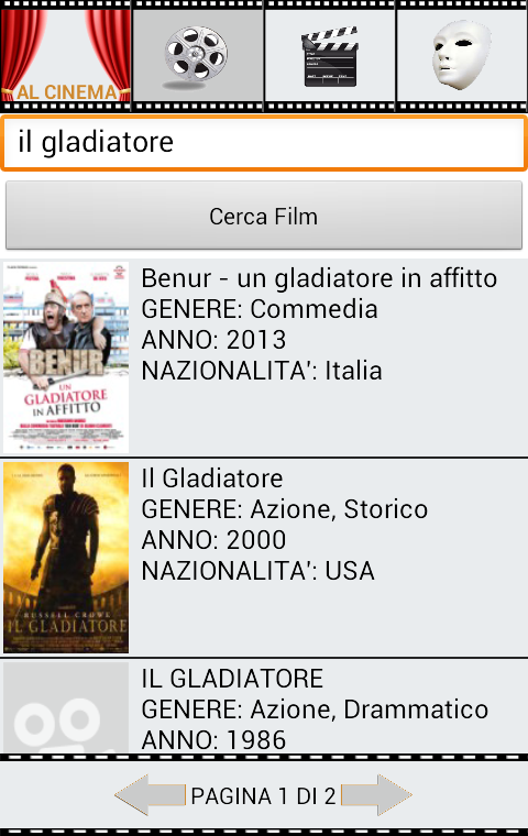 Ricerca per Attore: Vuoi conoscere tutti i film del tuo attore preferito? Inserisci il suo nome nella barra di ricerca e l'applicazione stampera' a video tutti i film da esso interpretati, dandovi la possibilita' di consultarne la locandina, la trama, il Cast completo e tante altre utili informazioni