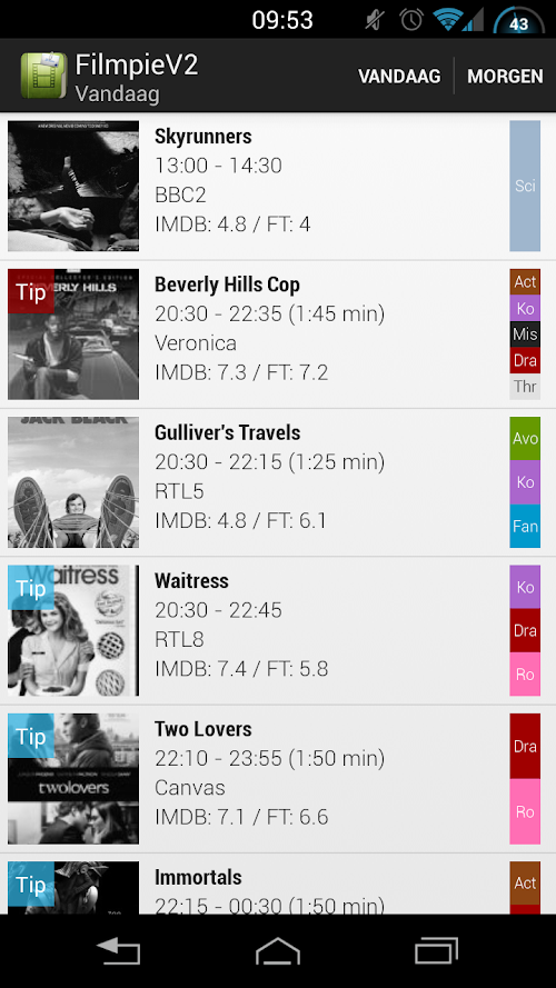 5. alternatievenOverview of feature films on Dutch television. The information is provided by Filmtotaal.nl and mymoviedb.org for additional information: