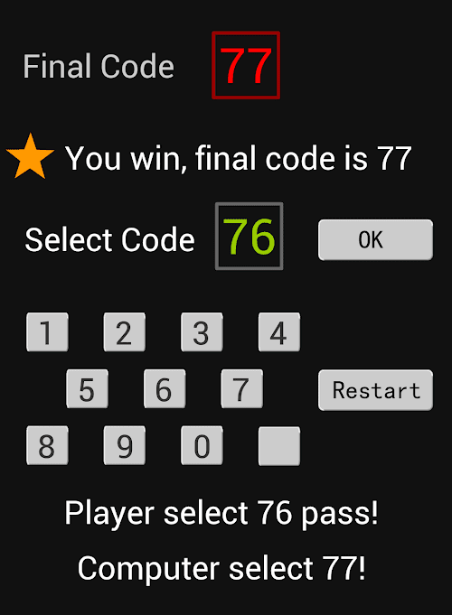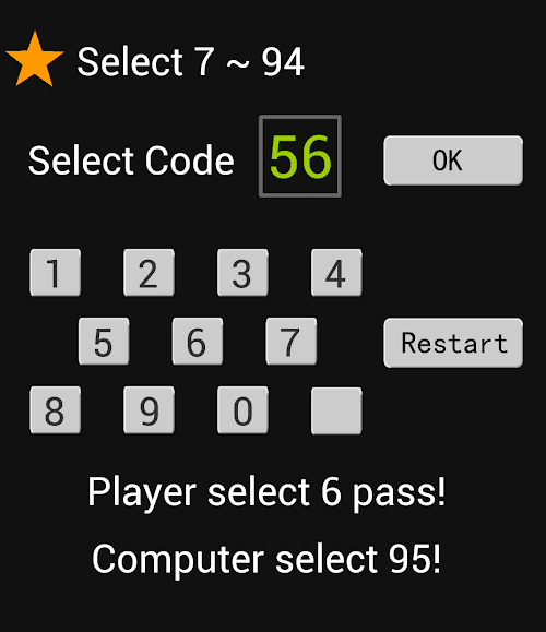 2. by the players to enter numbers, such as the ultimate password is 66, 50 players entered, the computer will randomly call from 50 to 99 a number.