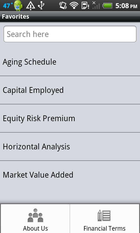The application is useful for those introducing themselves to the world of Finance and are keen to understand the fundamentals. The application will be the best guide for the beginners to understand key definitions and quick reference for most frequently used terms and ratios with easy navigation. The definitions have been provided in Part-I and in Part-II, the ratios are arranged according to five broad categories i.e.