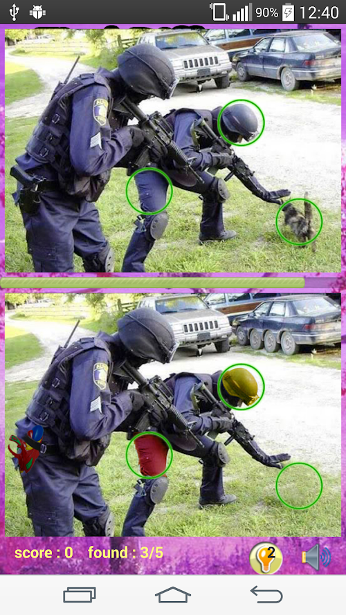 You have to find five differences between these images and spot them! over 20 stages. If can't find any of the differences, you could use "Hints" button. Have fun!
