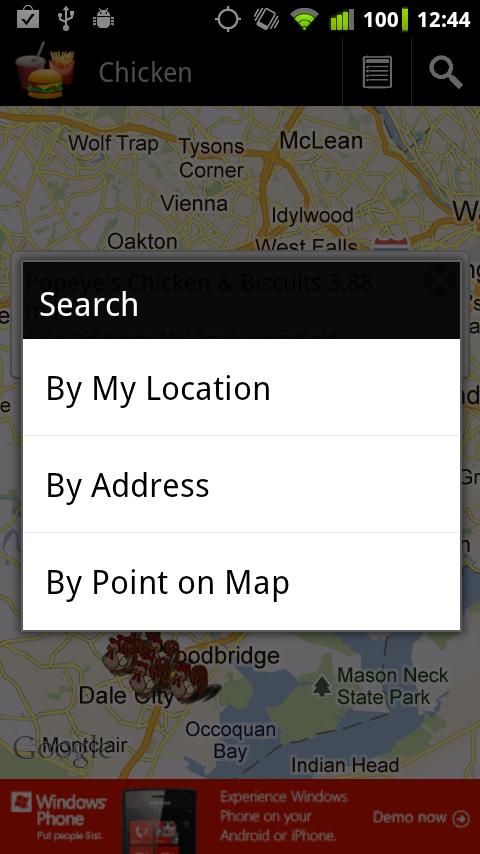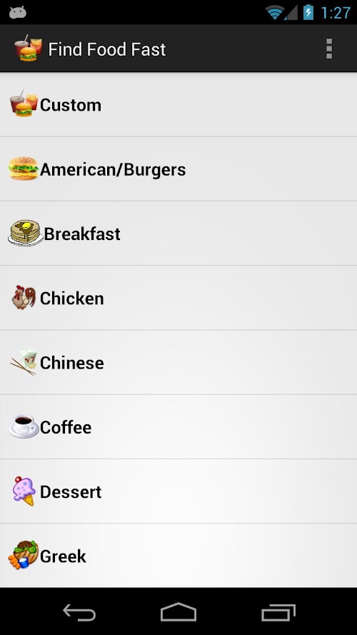 The newest,easiest to use, and fastest Fast Food Finder in the Android Market. With a few clicks find a quick bite to eat near your current location on the map (or by address and touch).