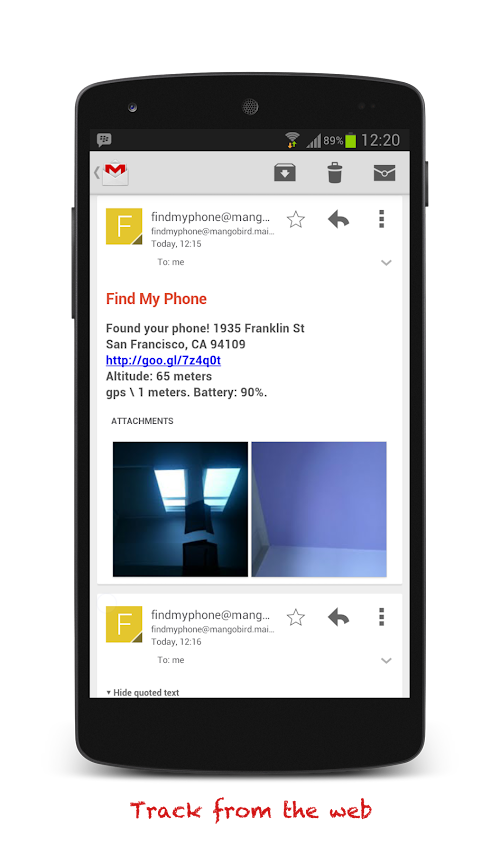 Want a visual of your phone's location? A mugshot of the thief? Find My Phone will email you a phone from your lost phone. (Requires set up).