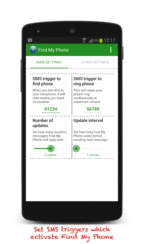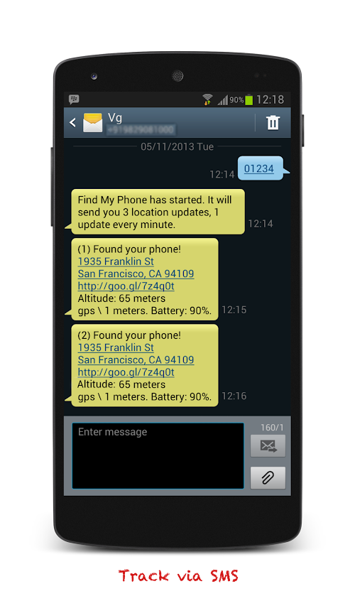 ► If you lose your phone, text '01234' to your lost phone and start tracking it.