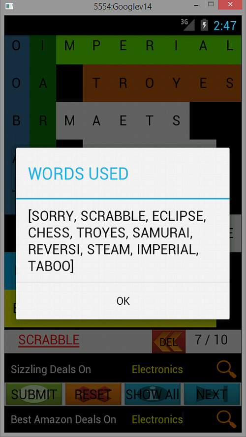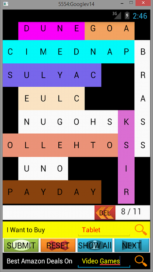 This is a fun and exciting app in which popular and famous board / card games are arranged randomly and are "hidden" in a grid going in many directions, and your objective is find those games. The app tells you how many games are hidden and also what games are hidden (click on Show All). You can also customize the size of the grid so that you can see games with larger names (eg on a tablet).