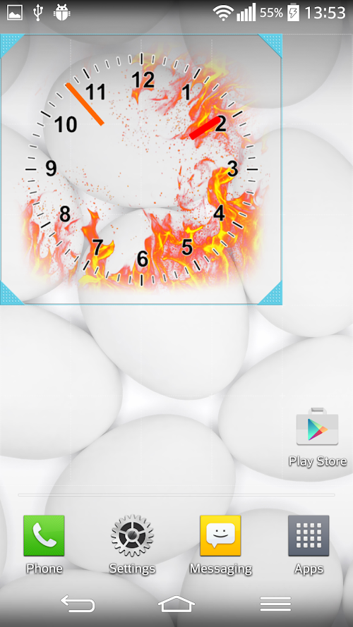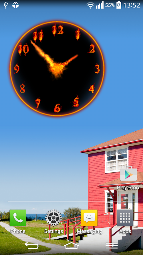 If you are choosing between fire and ice, definitely choose “fire clock widget”- this free app is on fire and waiting for you. Your new fire phone's ‘’smart alarm’’ will never again let you be late for something! Once you see a fiery clock on your screen you will be wide awake! Feel the heat radiating from our analog clock and prepare for the hot summer days! Don’t you want your mobile phone to become the center of attention wherever you go? Get the free download and set the world on fire with one of the hottest apps on the market! “Fire Clock with Alarm” will surely make your phone unique! If you are searching for something to bring the old sparkle to‘’fire clock live wallpaper’’, get our widget for Android and you will be thrilled for sure! Paint your mobile device with all shades of red and orange for free, try a burning fiery skull, “magic flames” glistening in the dark night or a a fireplace where you can warm yourself on a cold winter day! Once you see this vivid clock background, you’ll get an adrenaline rush and in no time you are ready to be a bad guy and accelerate your motorcycle!Enjoy riding while a skull on fire lightens up your Android phone! There are many cool gadgets, but only this burning widget one will make your mobile phone look dangerous! The fire heart clock will melt everybody’s heart! Put the clock on your phone background and the burning flames on your tablet device will remind you of a scorching love affair or a burning desire in your chest! Let the new beautiful widget inspire you to prepare a spectacular fireworks ,light some candles or enjoy in the show of tiny fireflies for a romantic date! The fire alarm gadget looks so vivid that you can almost hear the wood crackling and fire flickering! Download the mobile app and enjoy ‘’fire clock’’!