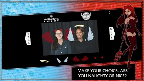 Protea Hotel Fire & Ice! is all about exploring your 'naughty' or 'nice' side; so no better way to experience it through our Naughty or Nice app. Interact with our Naughty Devil and Nice Angel by downloading and using this app; and you can stand a chance of winning some hot prizes to enhance your experience at Protea Hotel Fire & Ice!