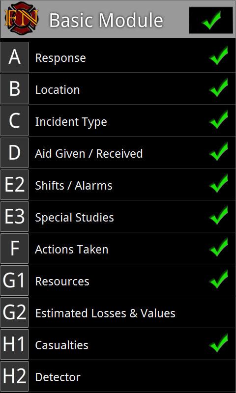 Perfect for the Fire Department Company Officer to document fire scenes. National Fire Incident Reporting 5.0 modules, and multiple camera images. Then export as PDF report to your SD card or as email.