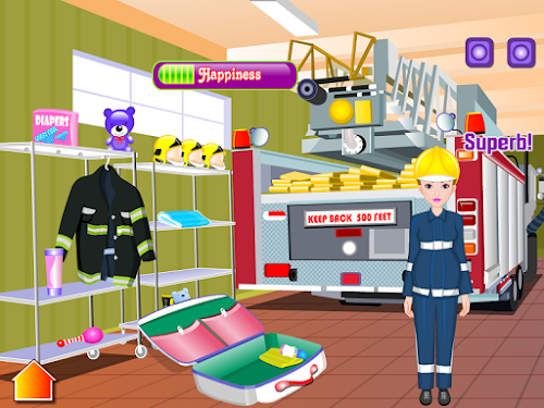 Hi, firefighters are very important in our lives, they save us when we are in a difficult situation. Even if it is a fire, flood or even about a cat who can not descend from a tree, firefighters are there ready to help. They have a very difficult job full of risks. Every day they risk their lives and for this we need to respect them and appreciate them. Today you will meet a woman who is a firefighter, she chose two years ago that this is what she wants to do. Through this game for girls you'll meet a wonderful woman. Every day she helps people but today she is one that needs help because she is pregnant and will give birth. She needs a friend but also a doctor. Do you want to help her through this game with babies? If you want to be her friend you will be able to do this through this game for girls.