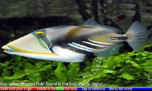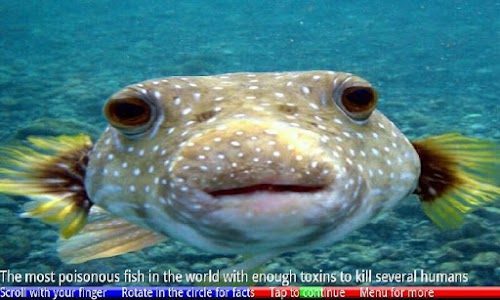 "Fish of the Coral Reef" features Race Mode, which asks you questions at speed to test your memory. At the end of the race, you can check how well you have done relative to your other races. Slideshow Mode shows you all the photos and facts in sequence. Simply slide through the images with your finger on the screen, both horizontally and vertically. Zoom and Pan Mode allows you to magnify the photos and see more detail. Quiet Mode allows you to play this game with or without voice prompts. And you can quickly jump to the relevant page on Wikipedia for more information.