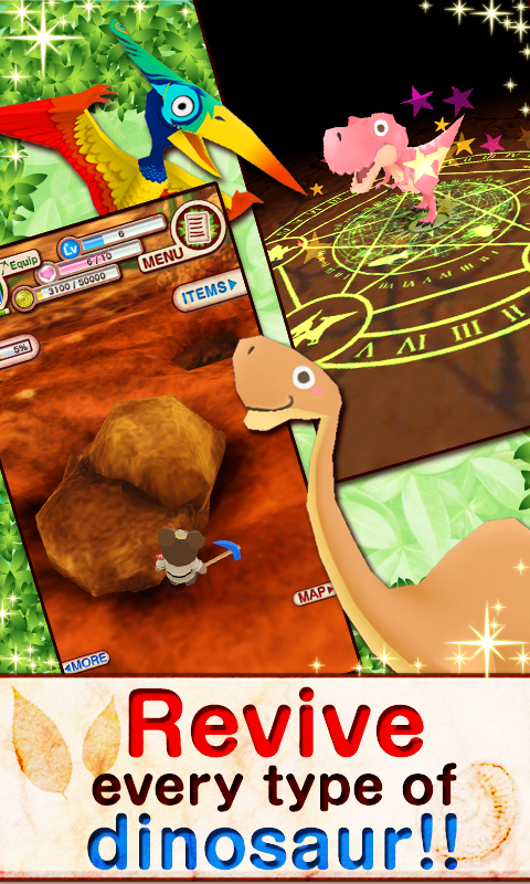 • The dinosaurs are rendered in cute 3D graphics! It makes you want to collect them all!