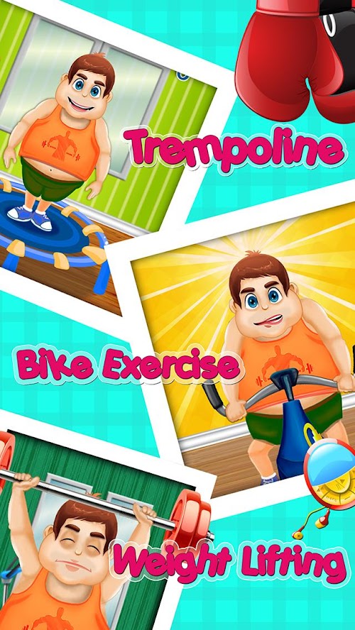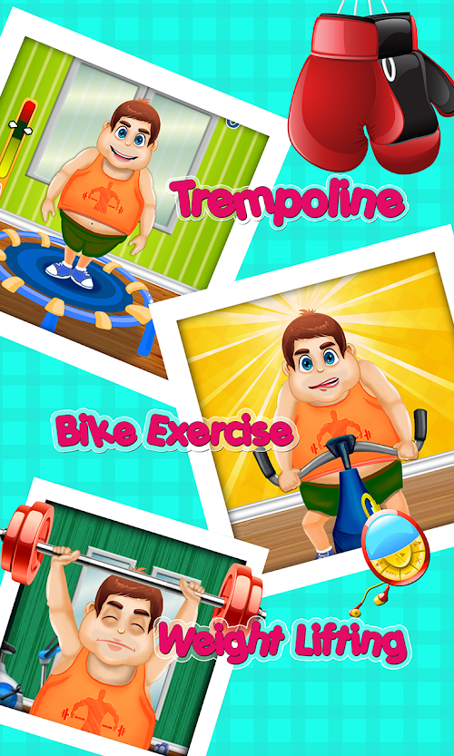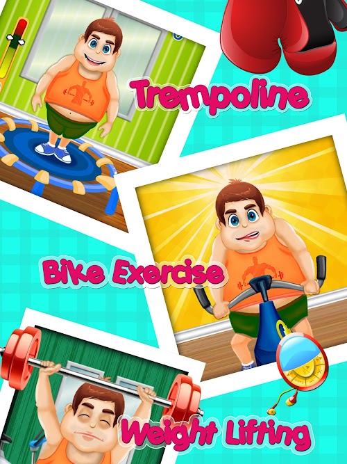 Burn fat in the fun way! Try hula hoops, exercise bikes, barbell exercises, yoga exercises and trampoline exercises in order to lose weight and burn calories. Try your hand at boxing practice and see the weight loss exercises get tougher through the levels. Rope jumps can really burn fat and so tap your fingers to execute perfect rope jumps and burn fat. Try this kids game now!