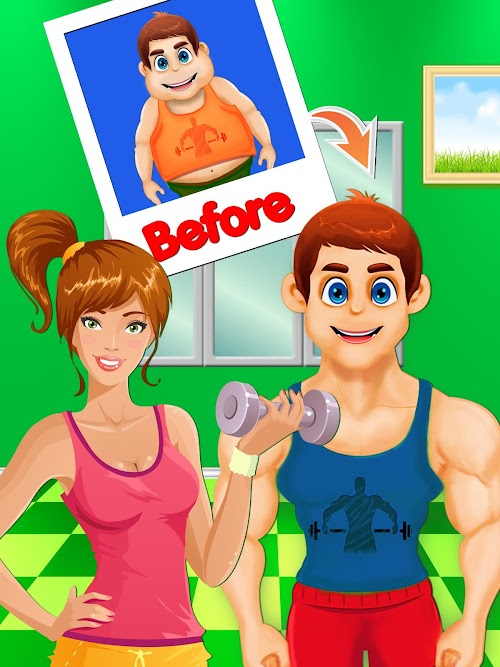 Welcome to the terrific, hard-working weight loss experience of our flabby friend. We bring you a number of excellent mini games. This kid's game is all about losing weight, exercise with dumbbells, barbell exercises and trampoline exercises. You can help this chubby friend burn calories and burn fat with some fun hula hoop. Work your fingers on this fitness exercise and burn calories with an extensive gym workout. Do you think rope jumps can make calories burn? Let’s try the rope jumps on this kids game and see if this is true.