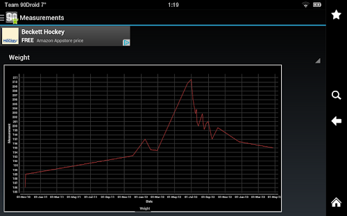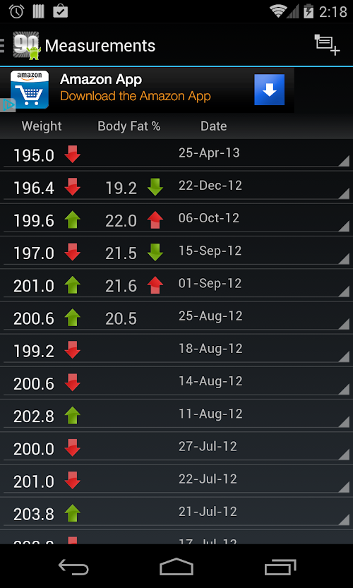 * Track your weight, body fat %, arms, legs, waist, with charts