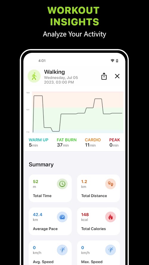 It gives you detailed statistics about the workout throughout the entire day. This data includes: