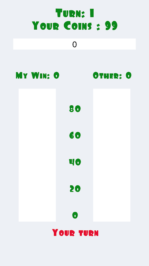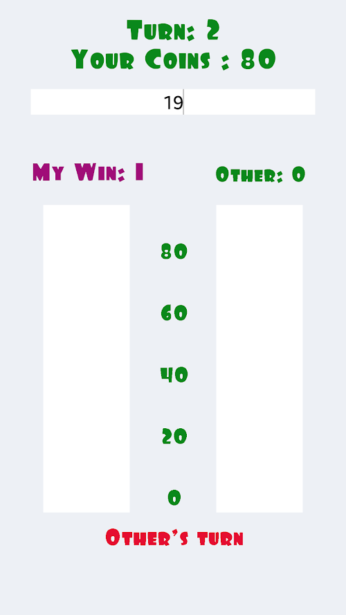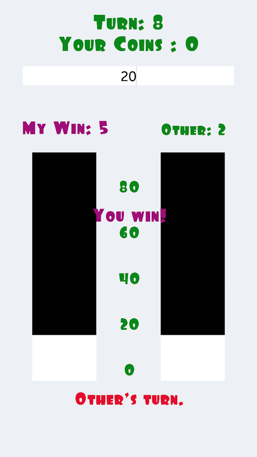 *On each turn, each player bets coins. Whoever bets more will win a turn.