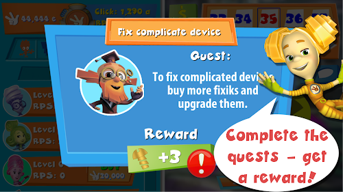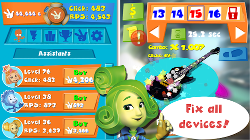 Fix the devices and get golden tideeshes for it. Hire fixies as helpers, train them, develop the talents to fix devices faster. Open new workshops and become Fixi-master!