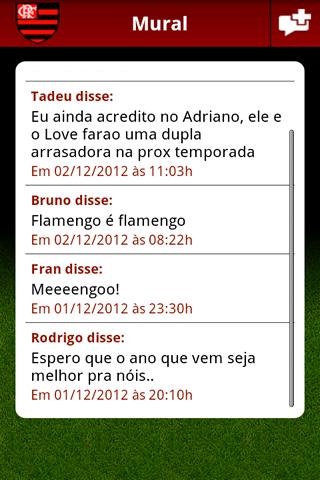 Mural de comentários onde você pode interagir com o restante da torcida e trocar informações sobre o time.