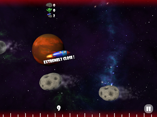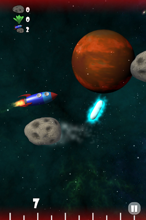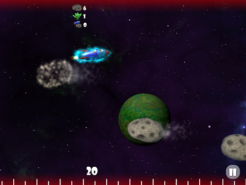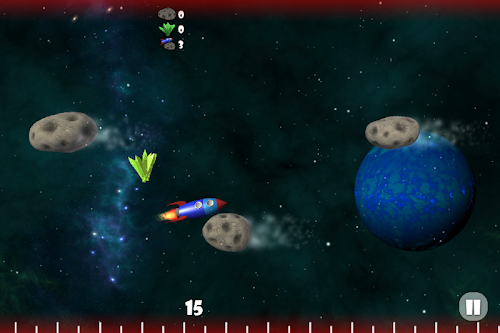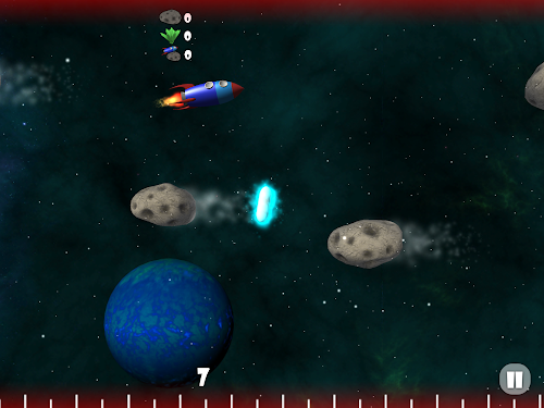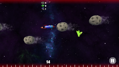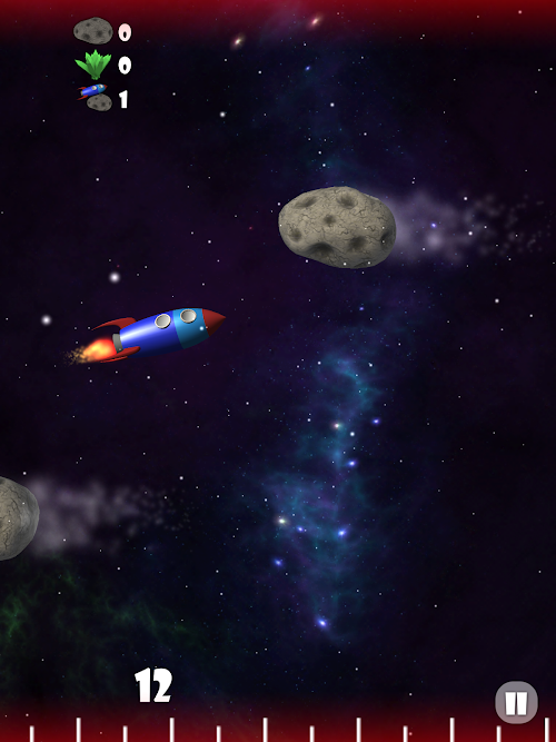 In Flare Rocket you have to pave the path of the Rocket through the Asteroid belt. Be careful! Do not go off the course, overfly the obstacles and knock down as many asteroids as you can during the force field effect. Fly as far as possible, collect crystals and score more than your friends!