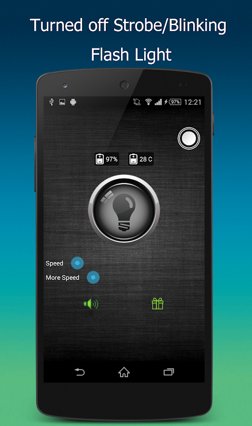 Super flash light is an amazing flash light that can help you to light dark places and this app include Strobe/Blinking flash light that can help to identify your place to anyone, also you can see battery level and device temperature.