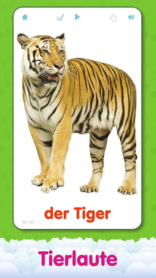 1500 voiced flashcards in German language with video clips and 5 learning games: "Find a Picture", "Coloring", "Puzzles", "Find a Word", "Fine motor skills for fingers".