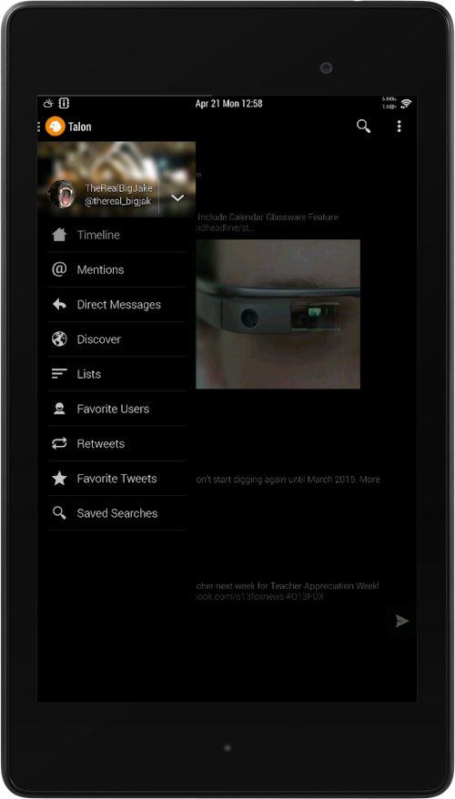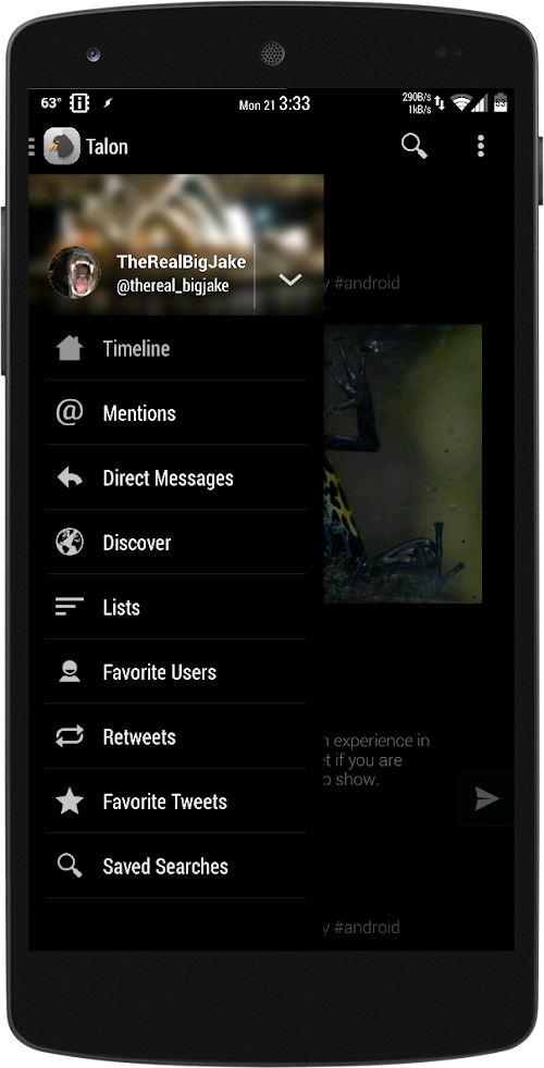 This is a theme for Talon for Twitter that is black with white accents and full image preview on the timeline.