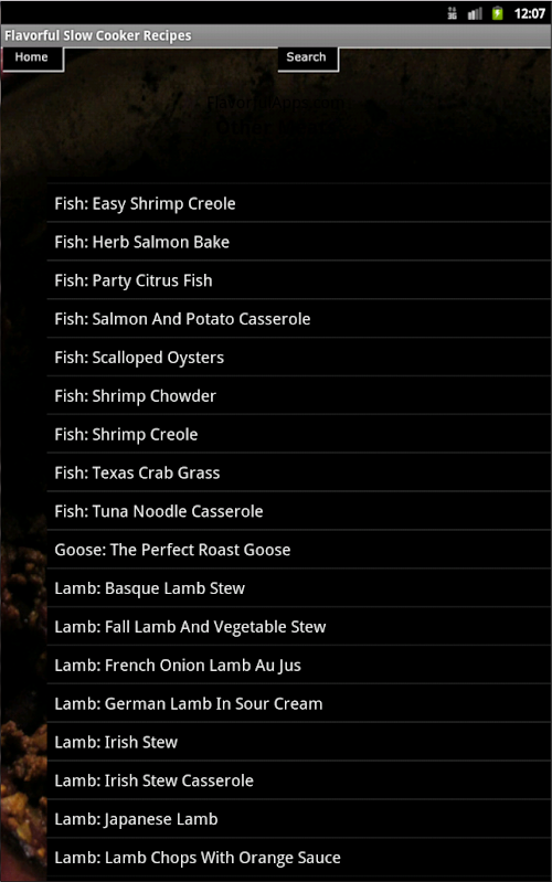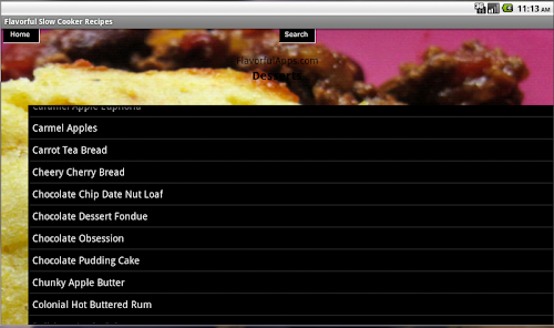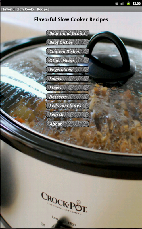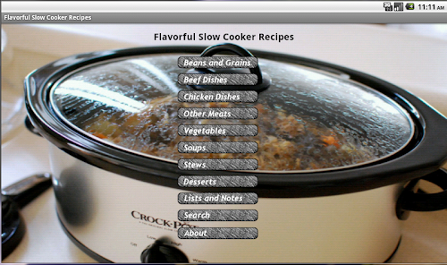 This application offers over 500 slow cooker recipes that are all categorized within the main menu for easy navigation and access: