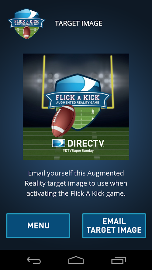 Kick field goals in augmented reality by pointing your phone at the magic target and watch your phone turn into a virtual football field! Flick balls through the uprights to score accuracy points, and make your way up the leaderboard!