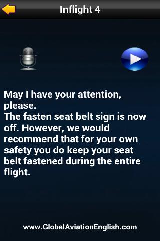 Flight Attendants can listen to in flight announcements in English and read them at the same time. The announcements are spoken by native English speakers, so you'll get an accurate guide to the correct pronunciation.