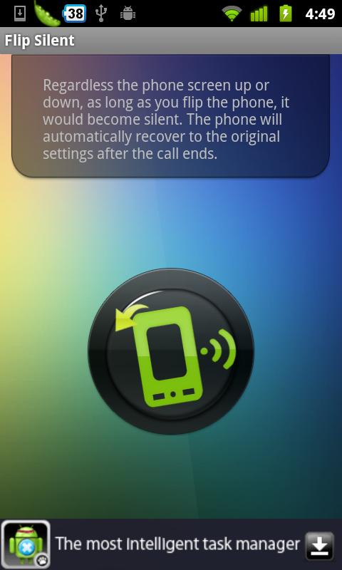 Compared with the same type of apps, "Flip Silent" is easy to understand and use, as long as you turn "Flip Silent" on, regardless the phone screen up or down, just flip it, the phone will become silent. Do not worry about missing calls.