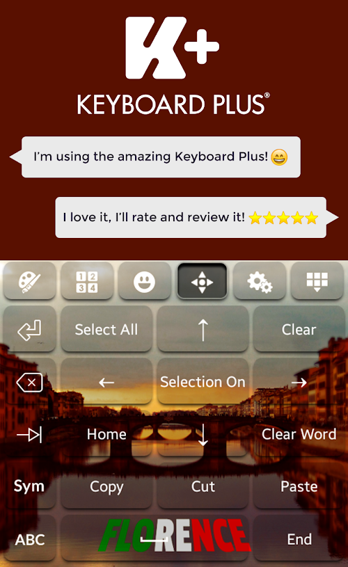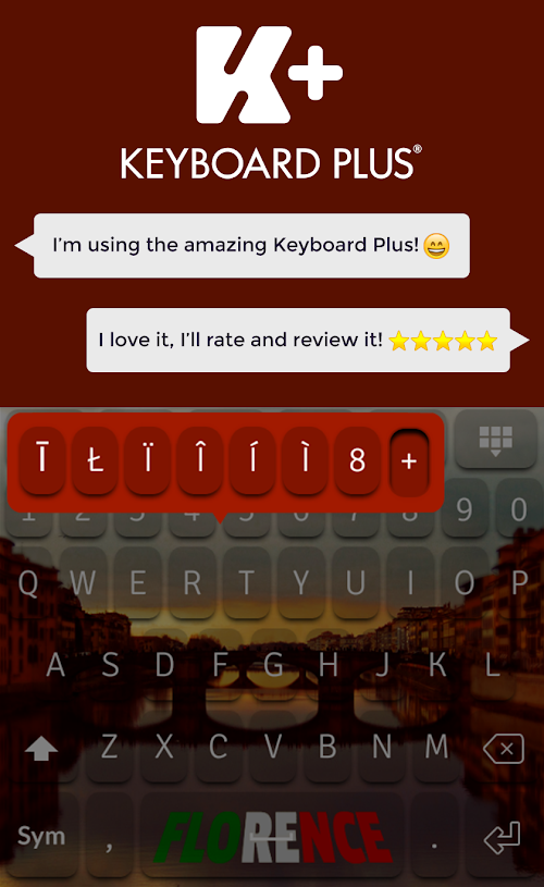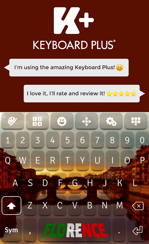 Customize your keyboard's appearance with a flush of passion and serenity that you love so much and bring your lover into an imaginary trip to Florence. Your chatting will be much funnier and easier and your keyboard will look so astonishing!
