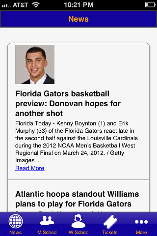 When you download this Florida basketball app, you are making sure you never miss another Gators basketball story again. This app is created by fans for fans so you are assured you get the most valuable information possible. We welcome your feedback and will do everything we can to make sure this app is the best basketball news app available.