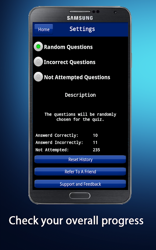 - You can choose from 3 options: Random Questions, Incorrectly Answered Questions, and Not attempted Questions