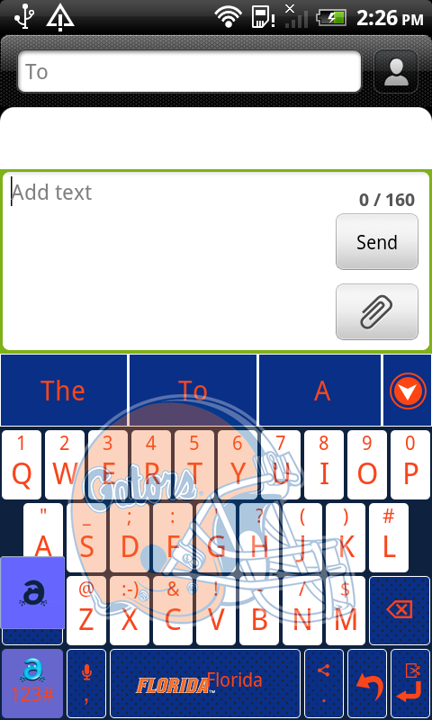 The University of Florida keyboard gives you the best keystrokes per character. It knows the names of your favorite college athletes, local post-game bars and it even remembers game-day catchphrases. The college themed smartphone keyboard incorporates school pride into all of your apps, emails and text messages.