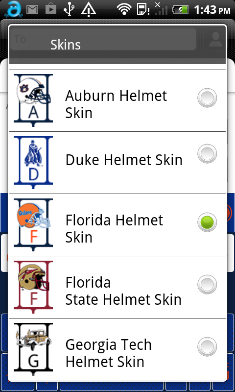 2 bits, 4 bits, 6 bits, a dollar. All for the Gators download this app and holler! Proudly show your love for the orange and blue, and text all the boys from Old Florida with the Adaptxt Helmet Keyboard. Developed in partnership with 2ThumbZ, this licensed smartphone keyboard is more than just a pretty interface. Features include an advanced predictive text capability, built-in school-specific dictionary, and the ability to let you program in as much smack talk as you want! Easily send your message to any Seminole, Hurricane, or Bulldog fan on your contact list with just a few keystrokes…Leaving you with even more time to cheer on the Gators!