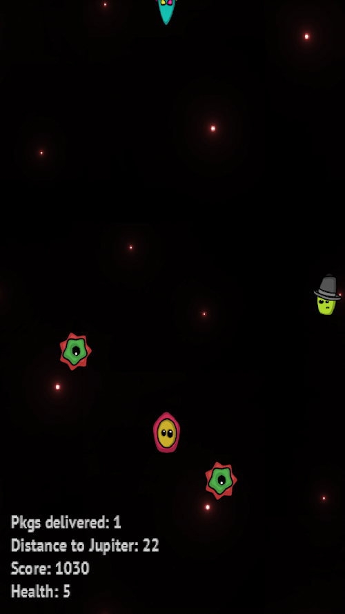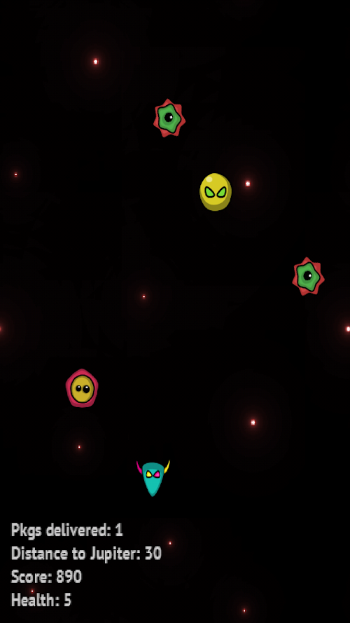 and... lots of space and stars!"Fly! Avoid! Space!" is a fast and addictive space game. Fly in space, and avoid stuff. Complete lots of levels, and try to get as much score as possible!