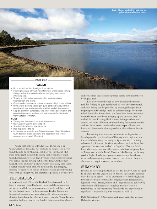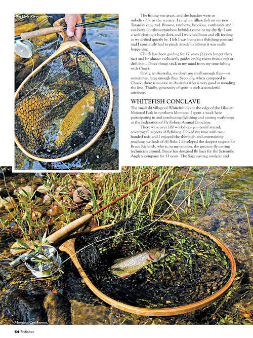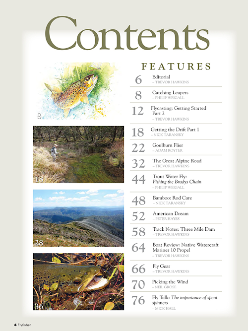 Flyfisher is a boutique magazine that many flyfishing enthusiasts have enjoyed ever since it first hit shelves in 1993. In the early days of publication, the magazine was an annual and soft cover issue. Flyfisher magazine has grown to earn the respect of hardened fly anglers in Australia and New Zealand. The magazine is today beautifully published and goes to market twice a year. The editorial team is led by Trevor Hawkins and Phillip Weigall, two of Australia’s most respected flyfishing authors. It is aimed squarely at the passionate fly angler and their partner, those that want to be kept informed of the latest techniques, destinations and equipment. As a group, flyfishers are prepared to spend money on quality accommodation, fishing guides, travel and equipment. They use Flyfisher as a reference to help them in their purchase of all things related to flyfishing.The magazine always attracts the best content from leading authors around the country, and in an age where flyfishing is growing in popularity once more, this is a publication to get your hands on!